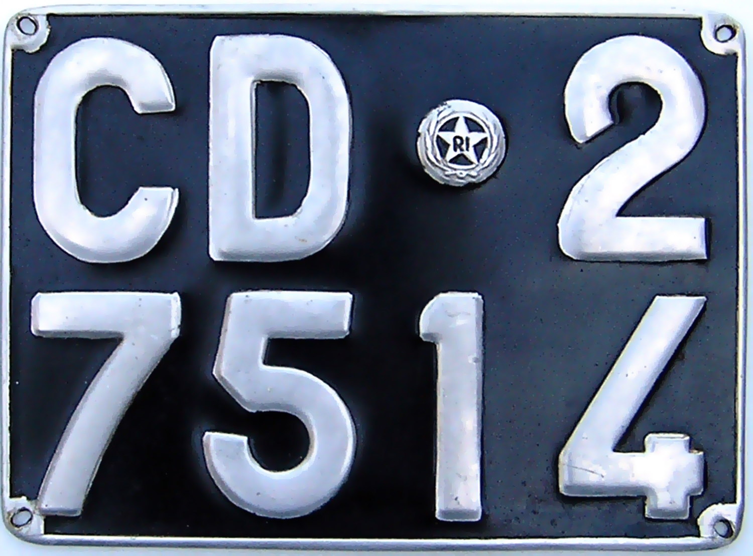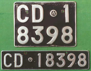 Il DM 28 novembre 1951 rivoluzionò il sistema precedente, introducendo una specifica codifica. Le nuove targhe, fabbricate in alluminio anticorrosione (“anticorodal”), misuravano mm 275 x 200 ed erano a sfondo nero con caratteri in rilievo naturali, ovvero non verniciati. Su due file, in alto vi erano la sigla CD, il sigillo della repubblica ed una cifra, in basso le restanti quattro cifre. Le targhe anteriori avevano la sigla CD seguita dai caratteri numerici, ed erano più grandi di quelle normali: mm 390 x 85 contro mm 267 x 62.